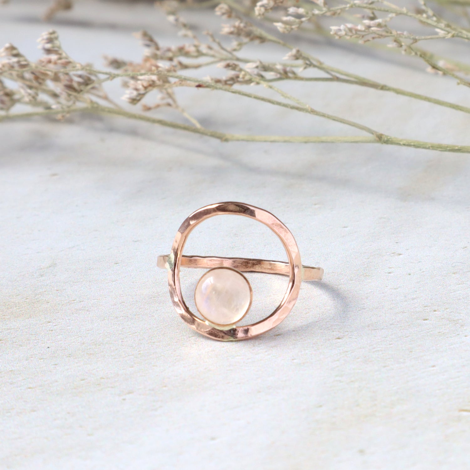 Create a statement with this mesmerizing ring featuring a heavenly halo in hammered gold, providing the perfect setting for your choice of captivating stone. Elevate your style with this stunning and unique ring.